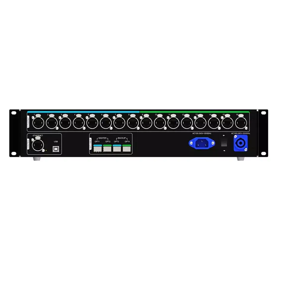 - Supports 16 Neutrik Ethernet inputs and outputs