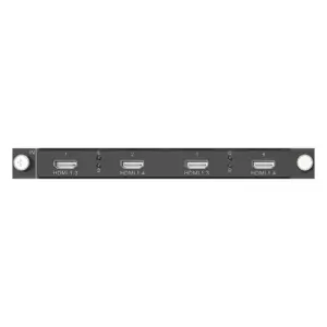 The H Series 4x HDMI Input Card is designed for the H Series H2/H5/H9/H15 Video Wall Splicers. It supports HDCP 1.4 and 10-bit input video signals. When four HDMI signals are connected, each input supports a maximum resolution of 2048×1152 @60 Hz, with custom resolutions up to 2560×972 or 884×2560 @60 Hz. With only two HDMI 1.4 inputs, each input can handle resolutions up to 3840×1080 @60 Hz, with custom resolutions up to 4096×1124 or 1024×4095 @60 Hz. Four status LEDs indicate the validity of the input signal.