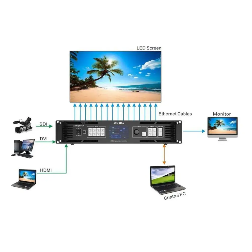 Thanks to its robust image processing and transmission capabilities, the Nova VX16S video screen controller is ideal for applications such as stage control systems, conferences, events, exhibitions, high-end rental, and fine-pitch displays.